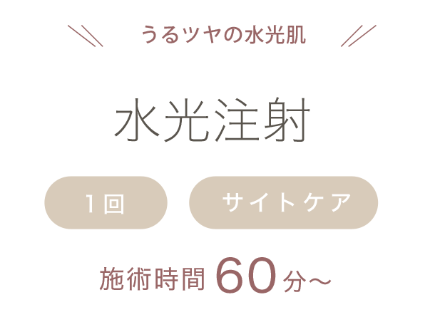 誰しもが羨むようなツヤとハリのあるお肌のことを、韓国では「水光皮膚」と呼んでいて、その「水光皮膚」を実現する治療法として今もっとも話題なのが、ソフトヒアルロン酸を注入する<水光注射>です。肌の内側から瑞々しくなり、煌めきとハリ肌の効果があるとして、韓国では盛んに行われている治療のひとつです。美容成分を、皮膚の浅い層へ均一に注入することにより、滑らかで内側から輝くパールのような肌を目指します。1回でも効果がわかりやすく、美容マニアの間で評判となっている美肌治療です。